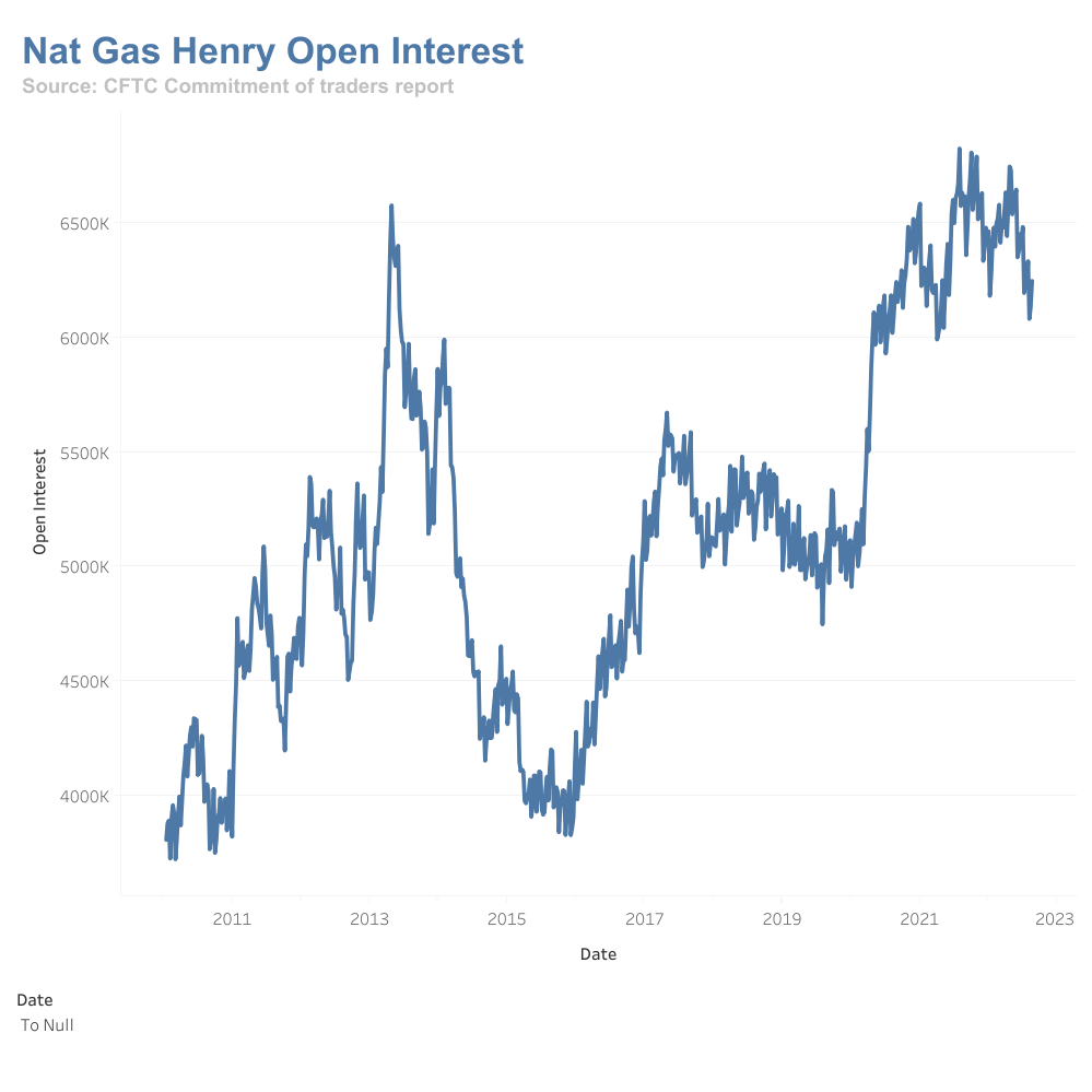 We can see the Open Interest in natural gas is still at a high range, maybe due to the natural gas supply shortage in Europe while the Open Interest for WTI oil and soybean oil has diminished.  Crude Oil Futures - Open Interest.png)
