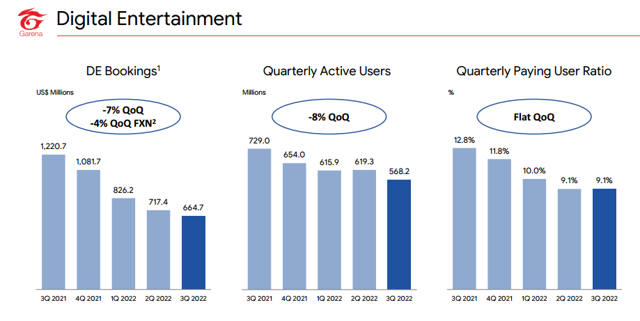 3) The gaming arm, Garena is facing a falling number of users.