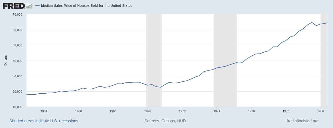 高通膨会拉高房价,但是高通彭带来的高利率会降低房价。那么历史上有高通彭和高利率的时代作为借鉴吗?有,1970年代的美国。