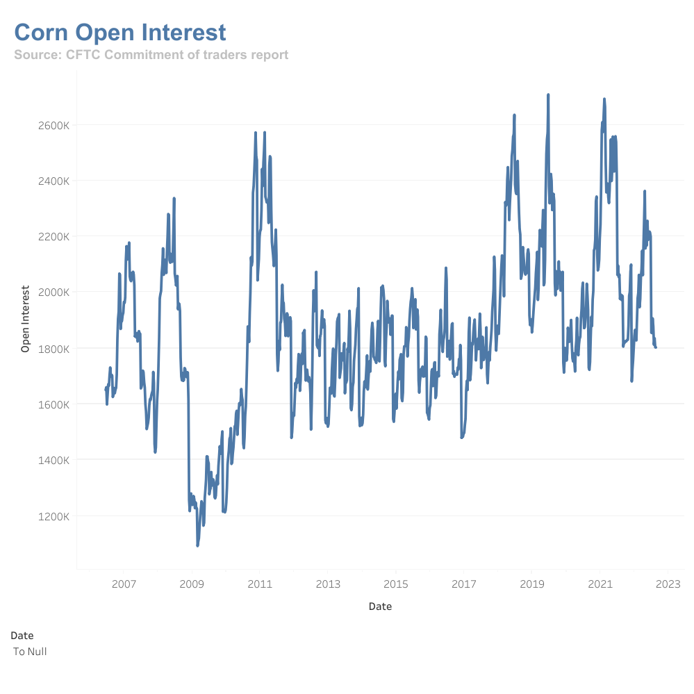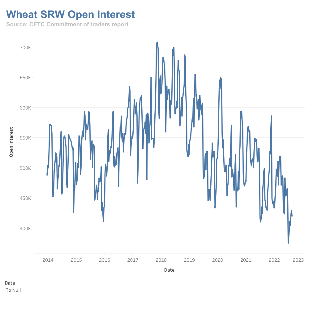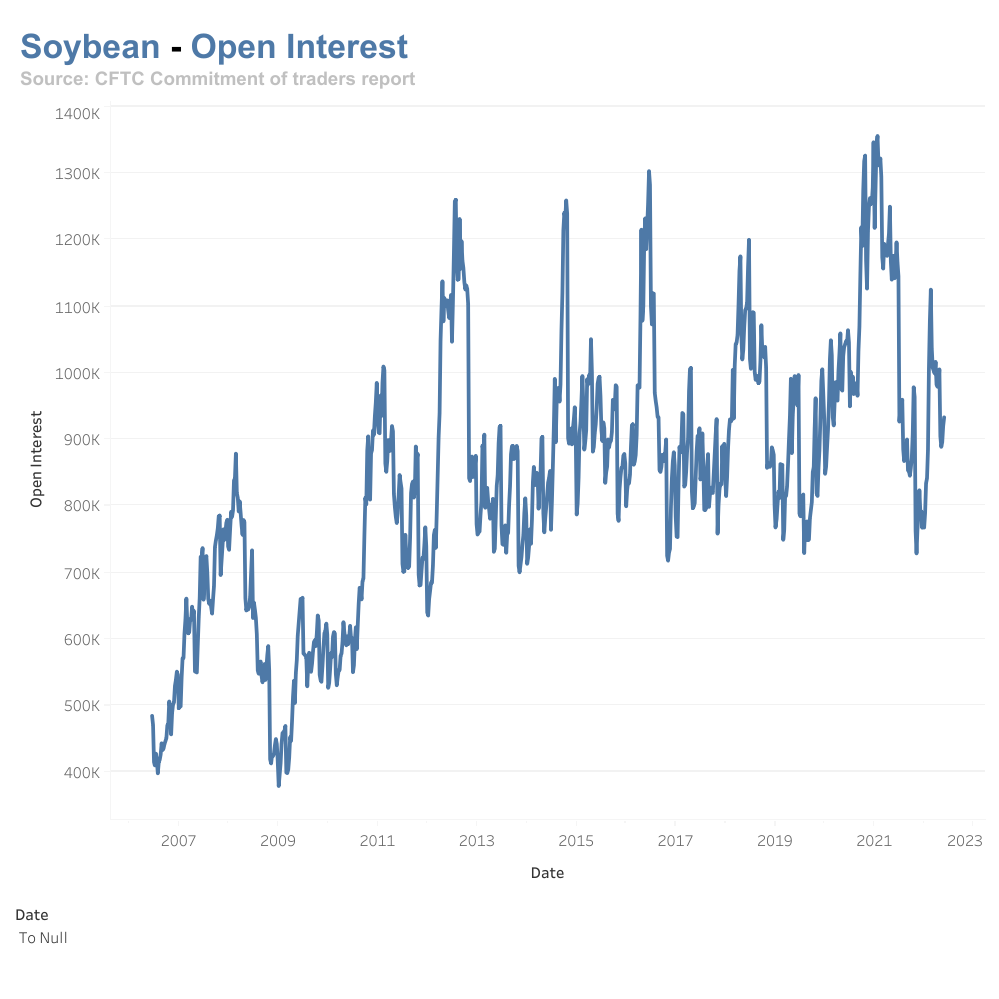 We can see the Open Interest in natural gas is still at a high range, maybe due to the natural gas supply shortage in Europe while the Open Interest for WTI oil and soybean oil has diminished.  Crude Oil Futures - Open Interest.png)
