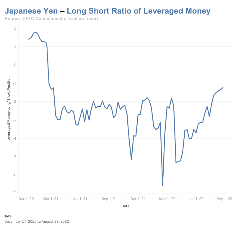 If we look at the long-short position of hedge funds for the Japanese Yen, we will realize the hedge funds traders start shorting the Yen in Dec 2021 alongside the institutional traders.