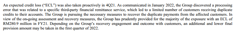 However, if you look at it deeper, the error was related to a specific third party financial remittance service, which we can be sure that CIMB is not the one fully liable. Also, this is not a unique event. Similar cases happen across the globe and banks never lose in these cases.