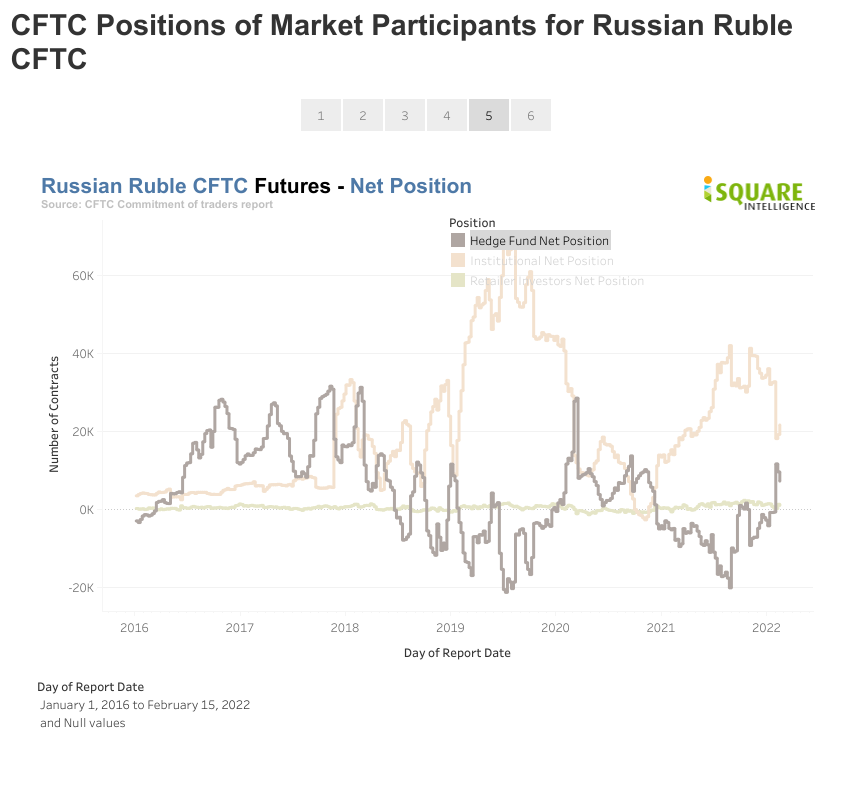 To check out how the position of hedge funds, institutional players, and retail investors on the Russia Ruble, you can check out this tool here: USD/RUB Futures Position